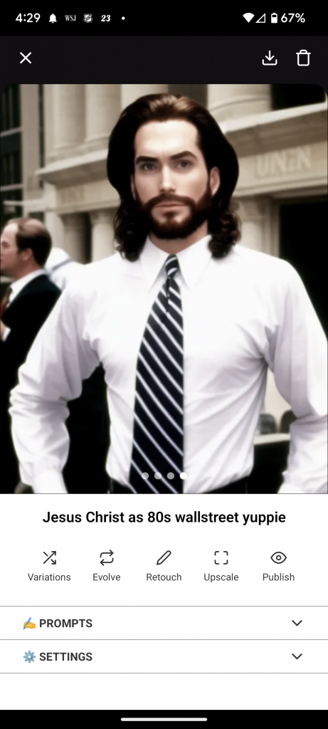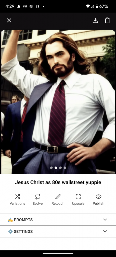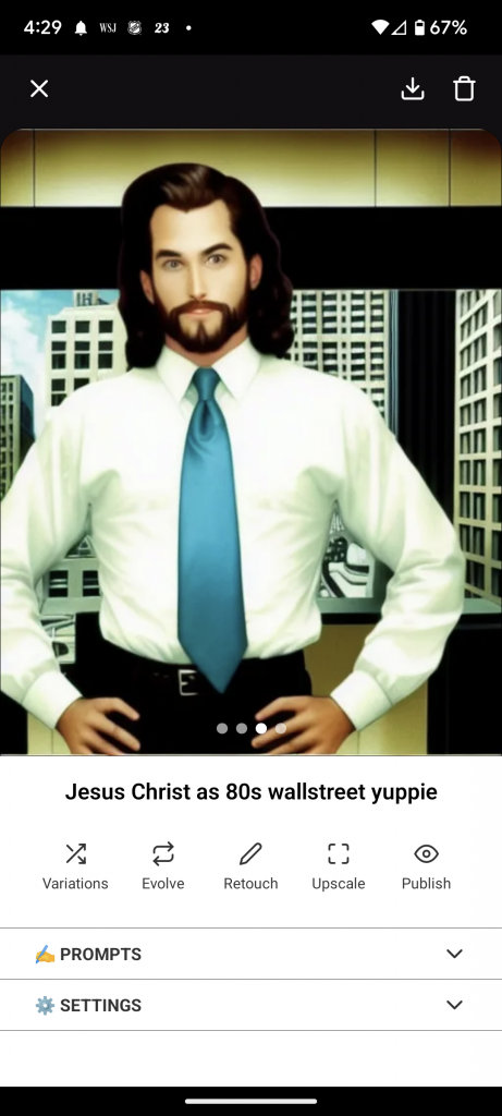 Greed is good mryug February 3, 2023 Leave a Comment on Greed is good Posted in Adventures in Sacrilege prompt: Jesus Christ as an 80s wallstreet yuppie Author: mryug