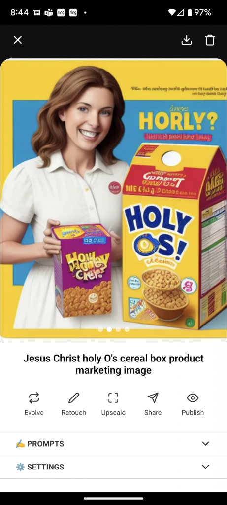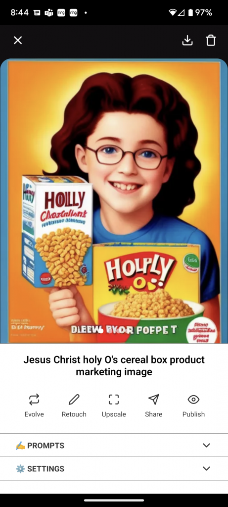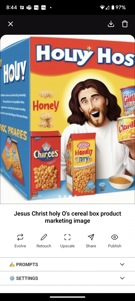 Holy O’s! mryug February 8, 2023 Leave a Comment on Holy O’s! Posted in Adventures in Sacrilege Prompt: Jesus Christ Holy O’s cereal box product marketing image Author: mryug